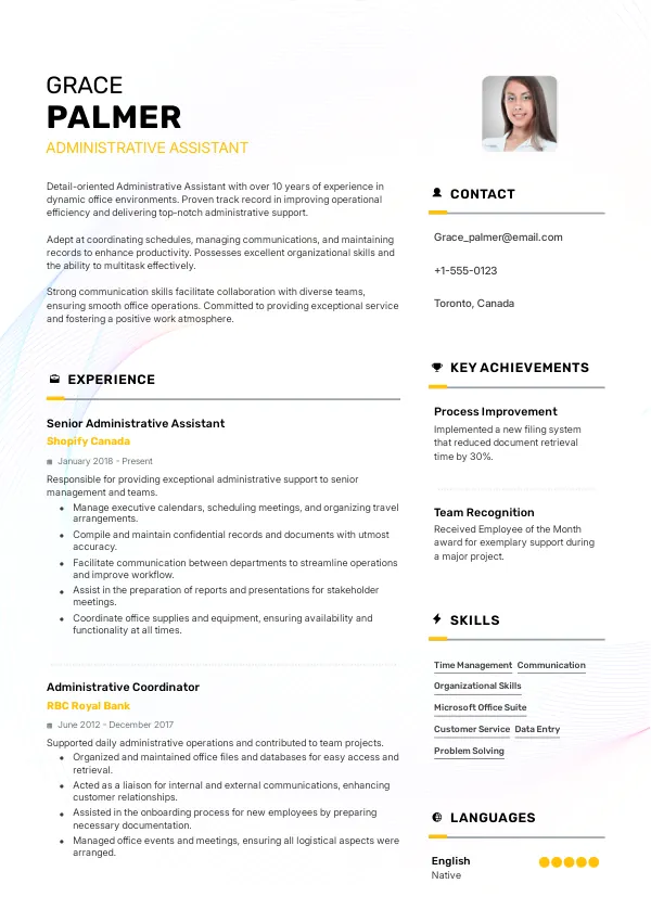 Get a professional Administrative resume tailored to your skills and Canada’s hiring trends.
