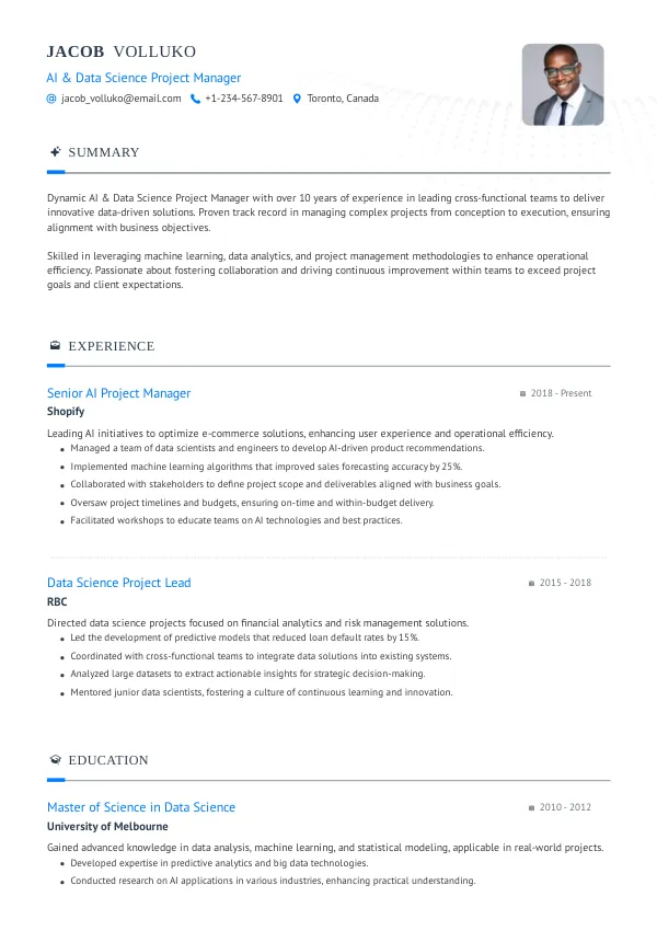 Craft a targeted resume that highlights your skills and experiences for the AI & Data Science Project Manager role.