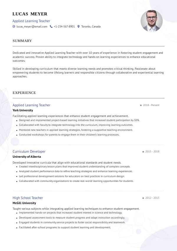 Optimize your resume to highlight your skills as an Applied Learning Teacher for 2026.