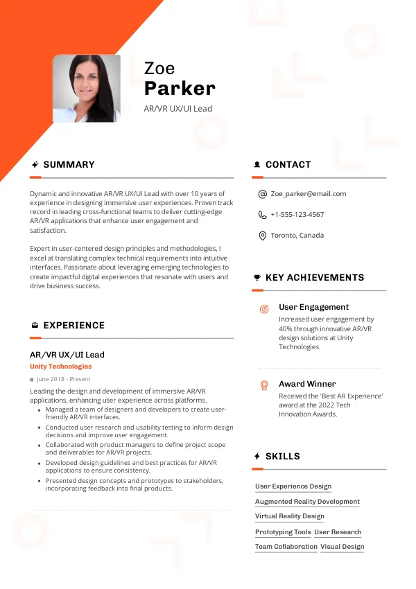 Resume Examples for AR/VR UX/UI Leads