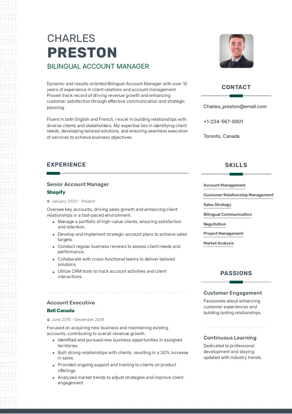 In 2026, the role of the Bilingual Account Manager in Canada is set to evolve significantly, driven by the integration of advanced customer relationship management (CRM) technologies and AI-driven analytics. This evolution emphasizes the importance of data literacy and the ability to leverage technology for personalized customer engagement. A TrueCV-optimized resume will highlight these critical skills, aligning with the expectations of forward-thinking employers.
