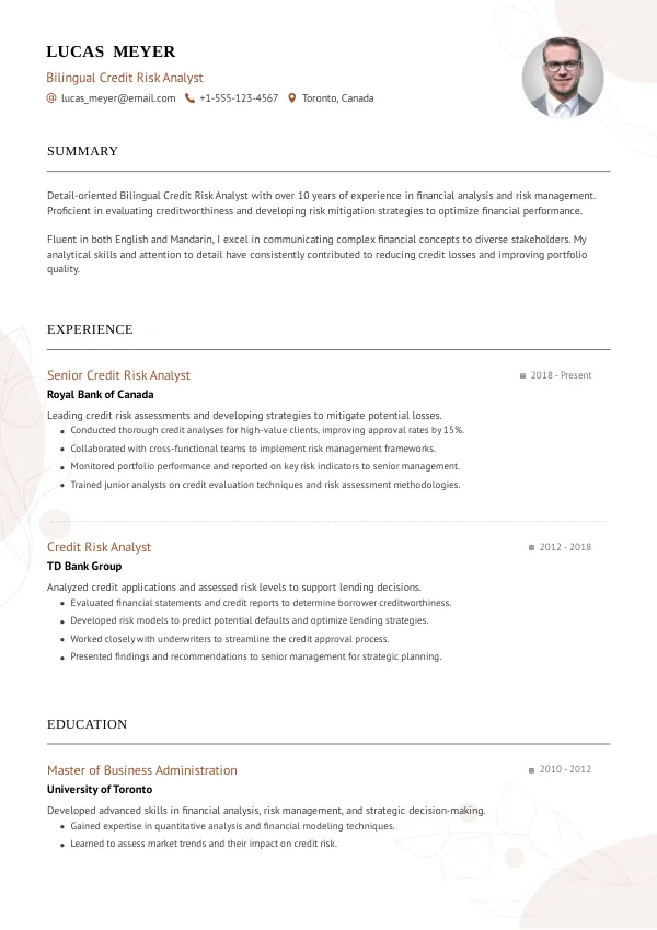 Resume Examples for Bilingual Credit Risk Analysts