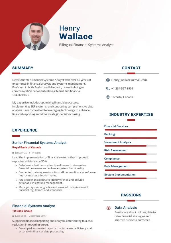 Leading financial institutions such as Royal Bank of Canada, TD Bank, and Scotiabank are expected to ramp up hiring for Bilingual Financial Systems Analysts in 2026. These organizations recognize the value of bilingual analysts in enhancing customer service and ensuring compliance with regulatory standards. A TrueCV-optimized resume can help you stand out to these top employers.