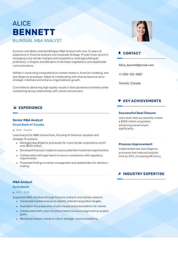 Resume Examples for Bilingual M&A Analysts