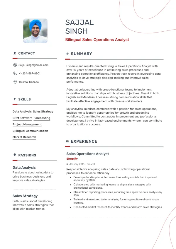 Resume Examples for Bilingual Sales Operations Analysts
