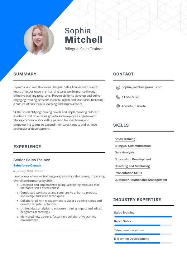 Enhance your resume for the Bilingual Sales Trainer role with tailored keywords and metrics.