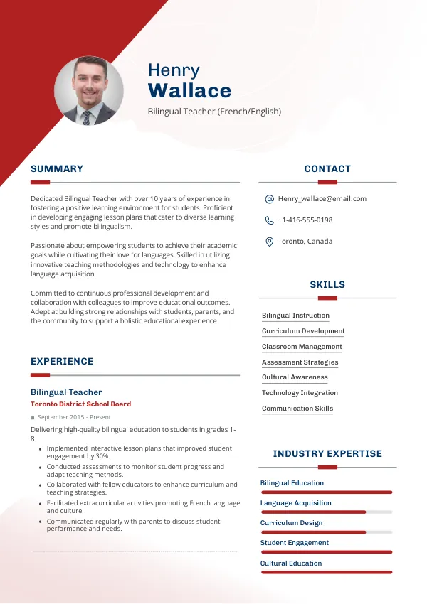 Build My Bilingual Teacher (French/English) ResumeEvolving Responsibilities of Bilingual Teachers