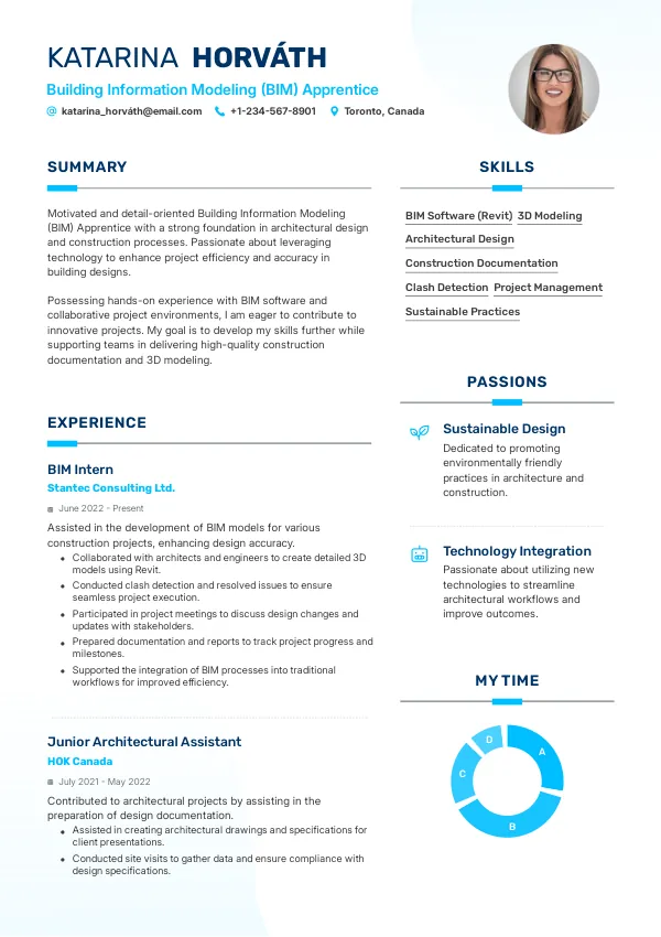 The construction industry in Canada is experiencing a robust growth trajectory, leading to increased job stability for BIM Apprentices. Employers are investing in training and development, ensuring a steady demand for skilled professionals. A TrueCV-optimized resume will reflect your commitment to career growth and stability, making you a desirable candidate.