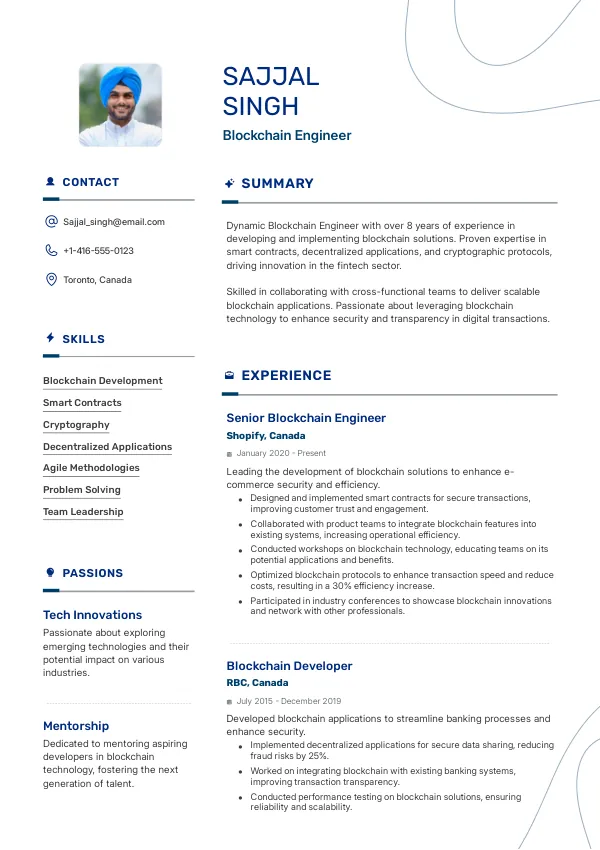 Resume Examples for Blockchain Engineers