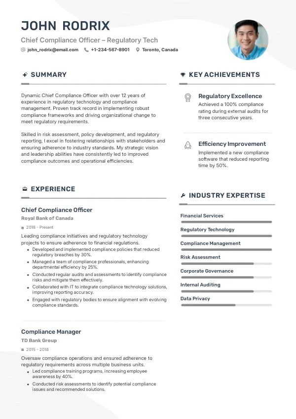 The finance industry in Canada is witnessing a surge in demand for Chief Compliance Officers in 2026, driven by increased regulatory scrutiny and the adoption of advanced RegTech platforms. These technologies enhance compliance monitoring and reporting capabilities, allowing organizations to mitigate risks more effectively. Employers are looking for CCOs who can leverage these tools to ensure adherence to evolving regulations, making a TrueCV-aligned resume crucial for candidates to showcase their relevant experience and adaptability.