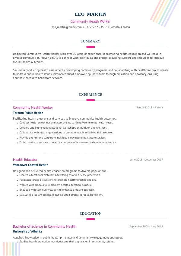 The salary for Community Health Workers in Canada is expected to rise in 2026 due to increased demand and the complexity of the role. As CHWs take on more responsibilities and utilize advanced technologies, employers will offer competitive compensation to attract skilled professionals. A well-crafted resume that reflects your relevant experience and skills can significantly enhance your earning potential in this growing field.
