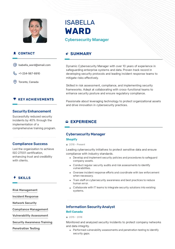 Resume Examples for Cybersecurity Managers