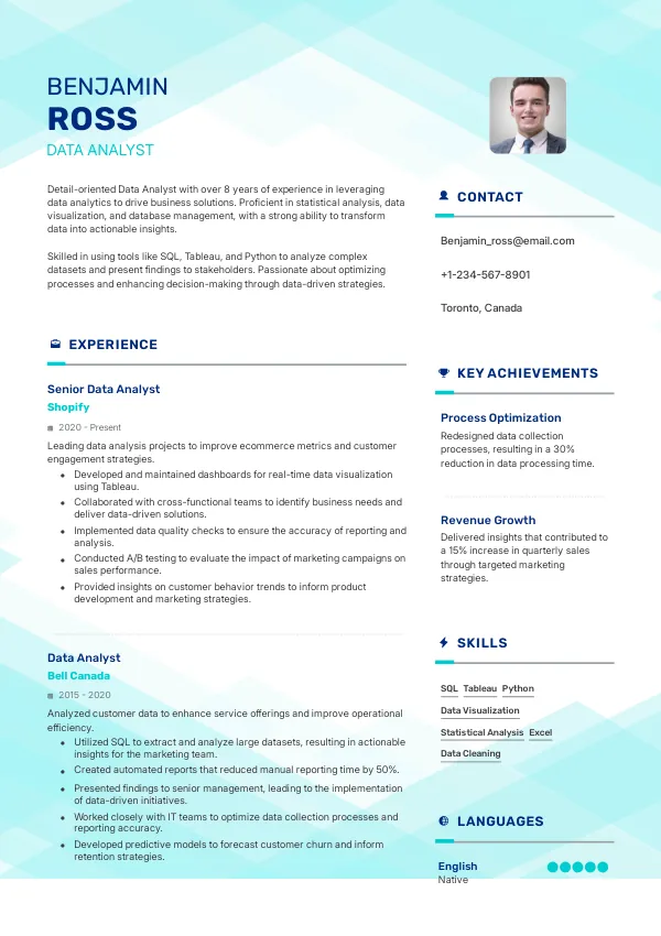 Get a professional Data Analyst resume tailored to your skills and Canada’s hiring trends.