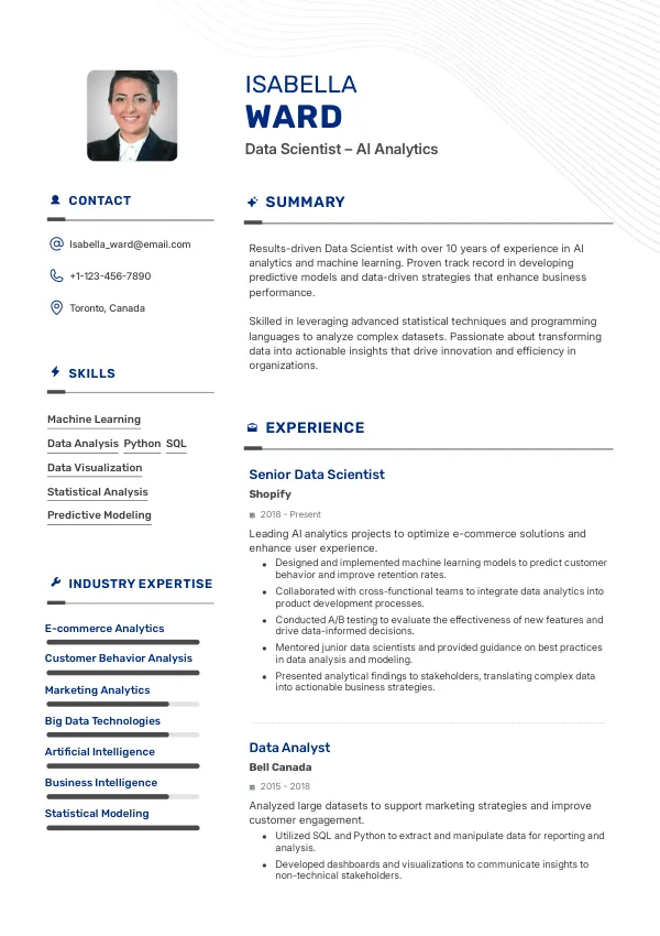 Highlight your AI Analytics skills effectively with a TrueCV-optimized resume.