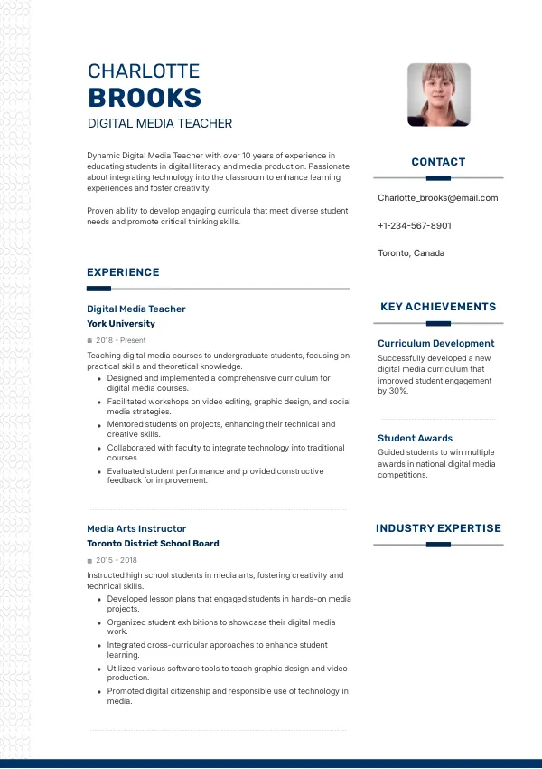 As the role of Digital Media Teacher evolves, ensure your resume reflects the latest industry standards and expectations with TrueCV's tailored services.