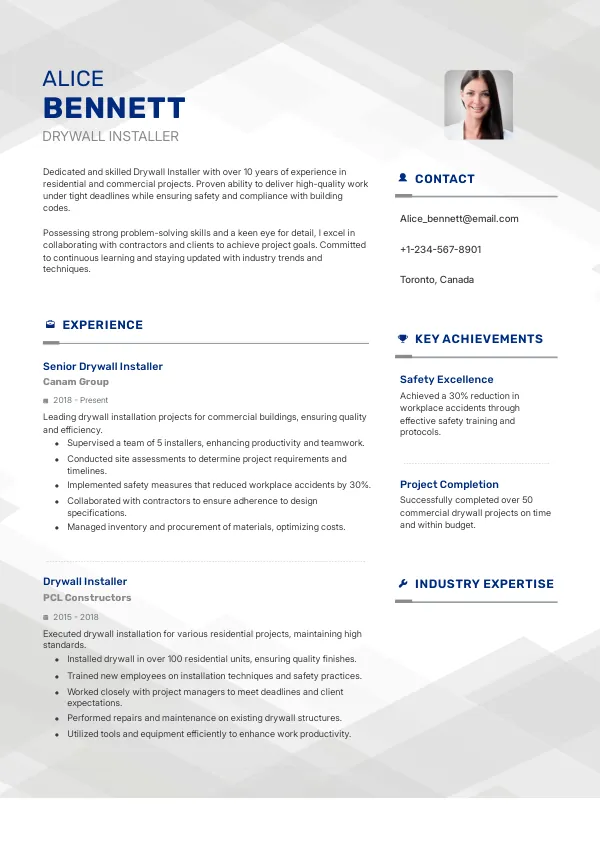 Stand out with a resume optimized for the latest hiring trends in drywall installation.