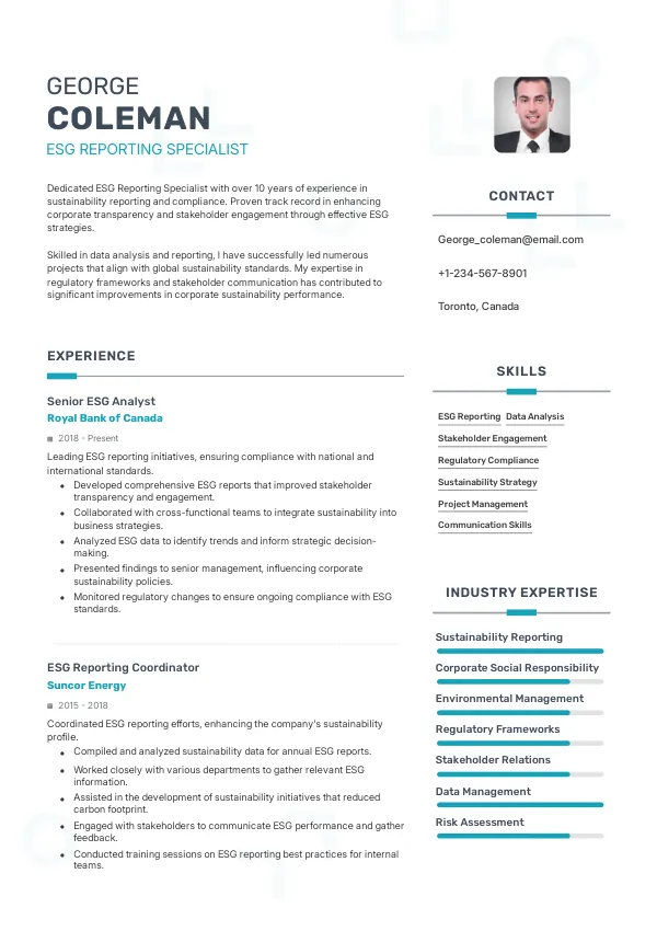 Build My ESG Reporting Specialist ResumeEvolving Responsibilities of ESG Reporting Specialists