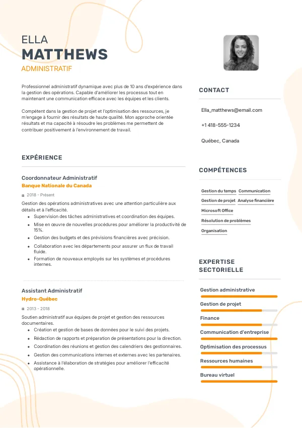 Un CV Administratif axé sur les résultats, qui met en valeur votre impact et passe les filtres ATS utilisés au Québec.