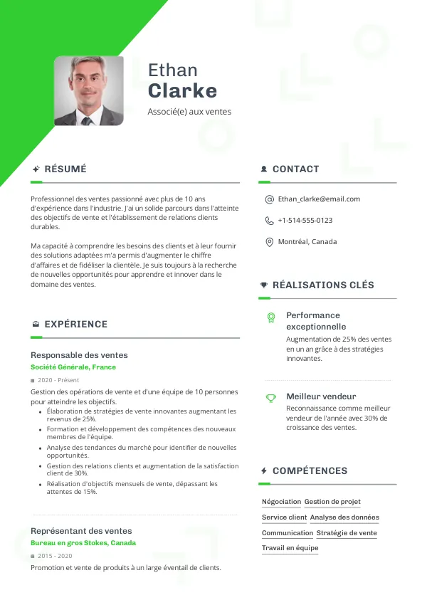 Obtenez un CV Associé(e) aux ventes professionnel, adapté à vos compétences et au marché de l’emploi du Québec.
