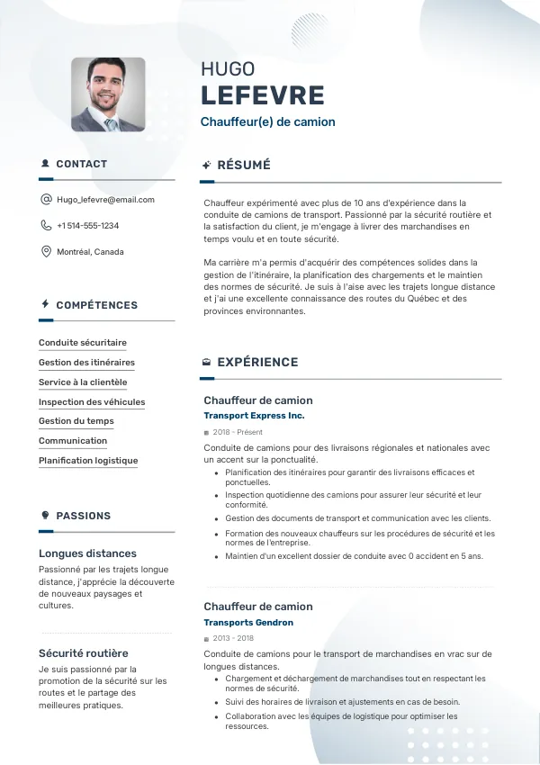 La compétition pour les postes de chauffeur(e)s de camion augmente, surtout dans les grandes villes comme Montréal et Québec. Avec un résumé professionnel bien conçu, vous pouvez vous démarquer et obtenir des entretiens plus rapidement.