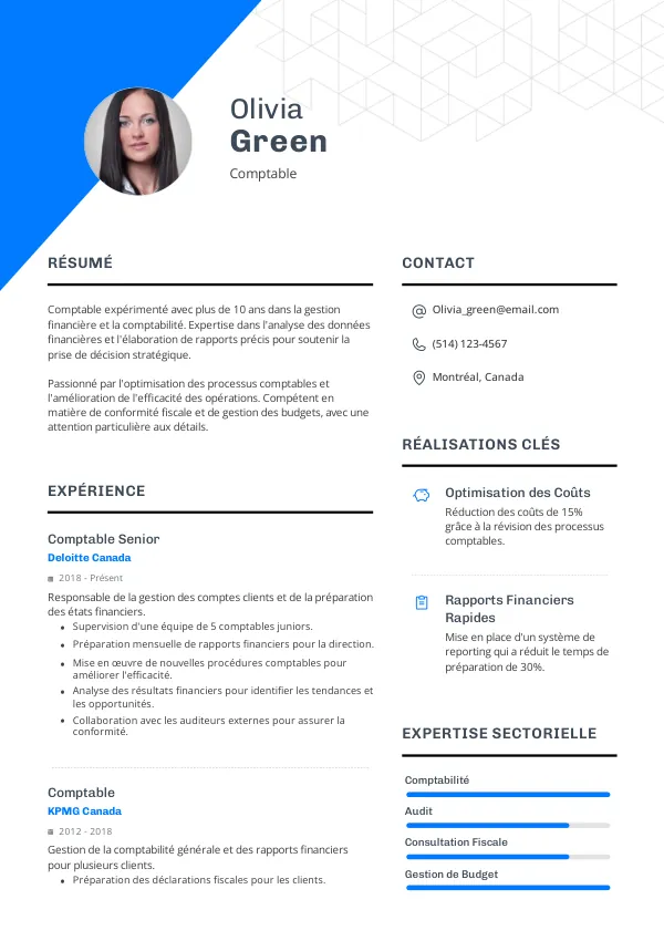 Obtenez un CV Comptable professionnel, adapté à vos compétences et au marché de l’emploi du Québec.