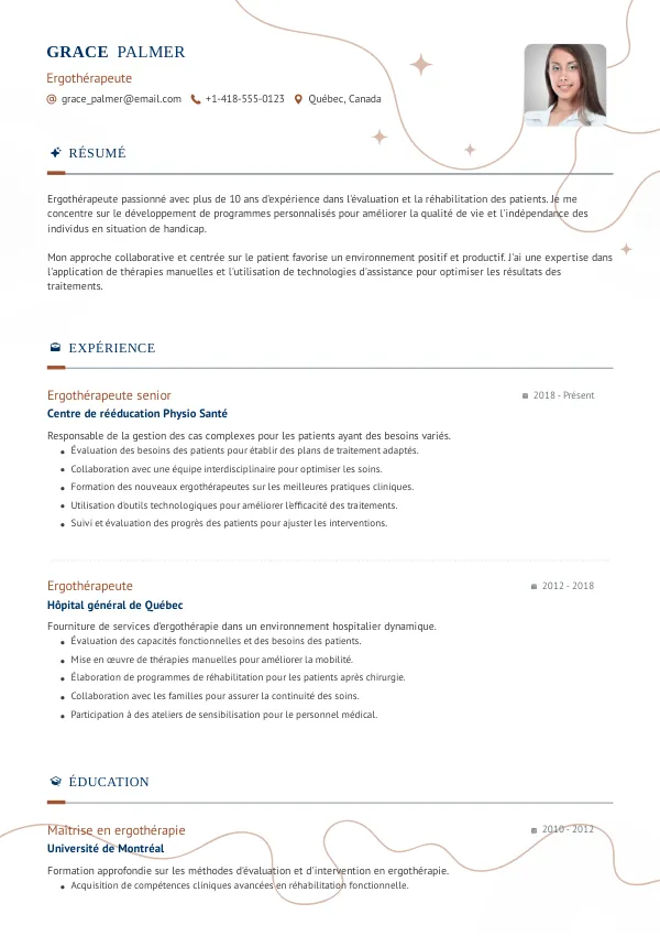 Obtenez un CV Ergothérapeute professionnel, adapté à vos compétences et au marché de l’emploi du Québec.