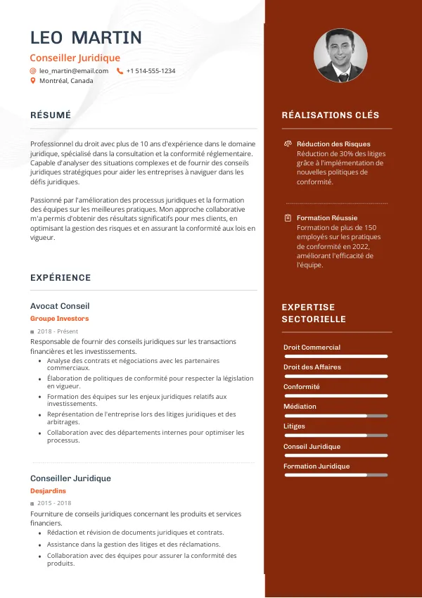 Un CV Juridique axé sur les résultats, qui met en valeur votre impact et passe les filtres ATS utilisés au Québec.