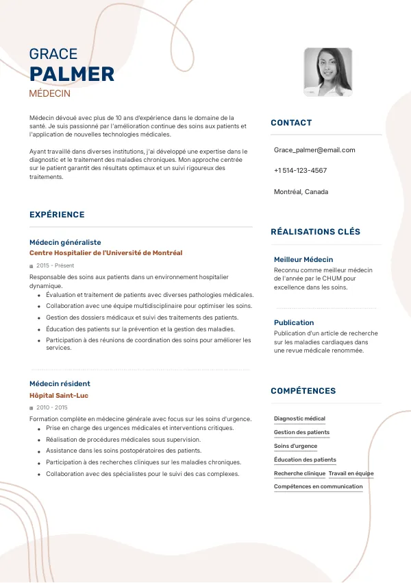 En tant que Médecin, votre résumé doit refléter vos compétences cliniques et vos expériences pertinentes. Le marché du travail au Québec est dynamique et exige des candidats qui se démarquent avec des CV adaptés aux attentes des recruteurs.