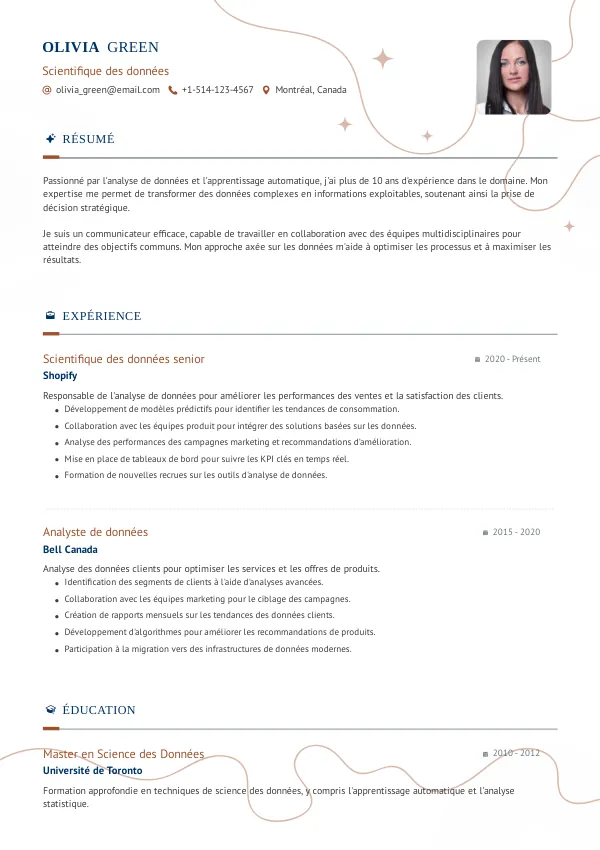 Obtenez un CV Scientifique des données professionnel, adapté à vos compétences et au marché de l’emploi du Québec.
