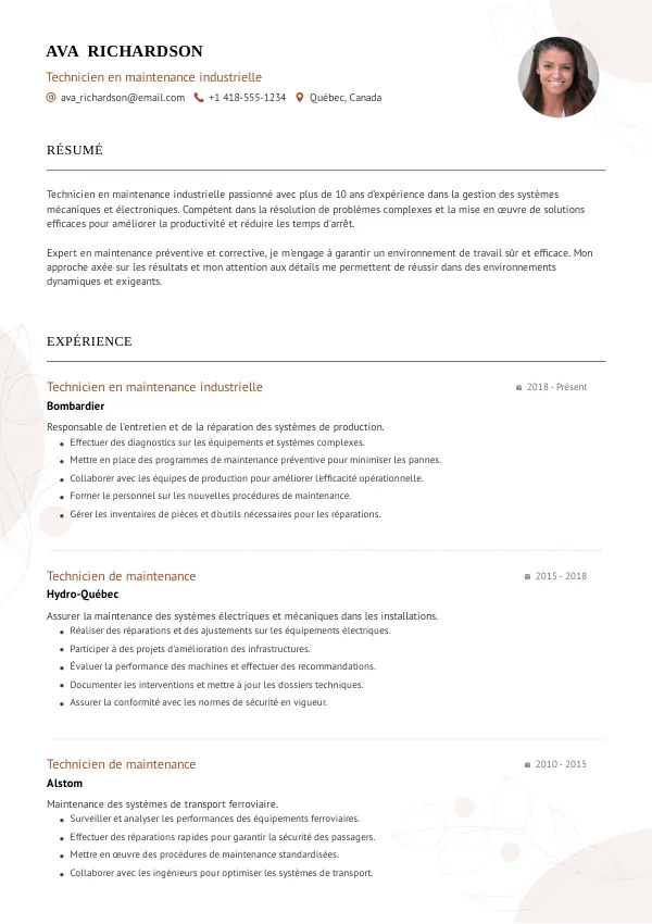 Obtenez un CV Technicien(ne) en maintenance industrielle professionnel, adapté à vos compétences et au marché de l’emploi du Québec.