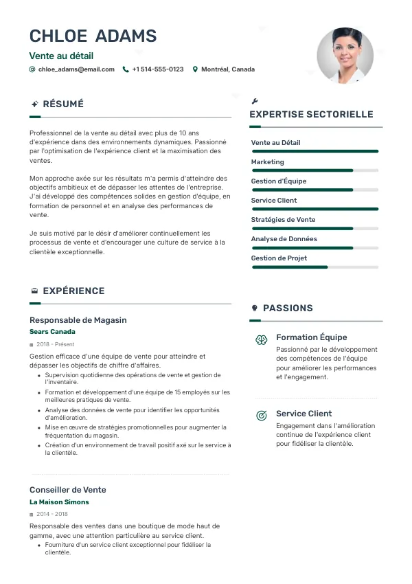 Obtenez un CV Vente au détail professionnel, adapté à vos compétences et au marché de l’emploi du Québec.