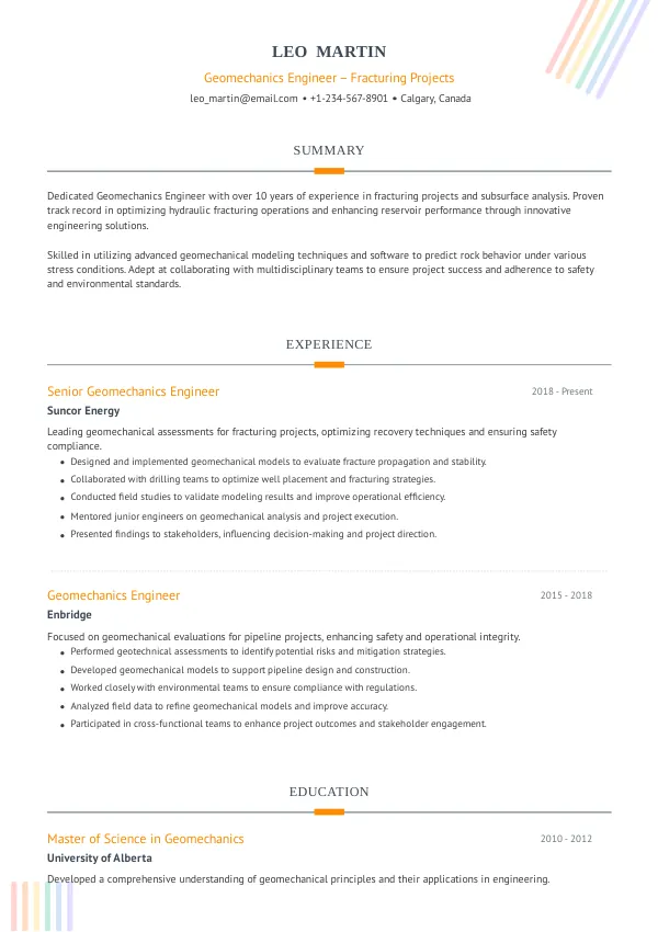 Resume Examples for Geomechanics Engineers