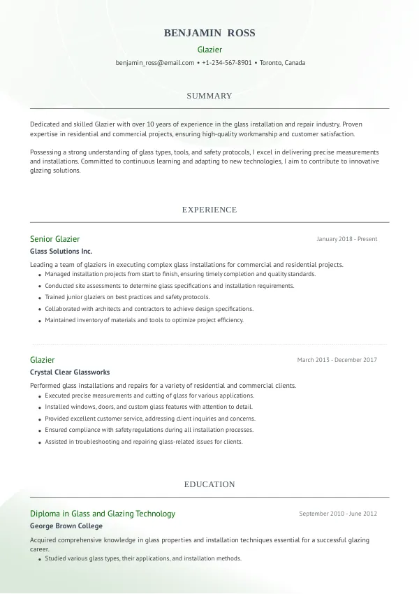 Ensure your resume highlights your skills as a glazier for 2026 hiring trends.