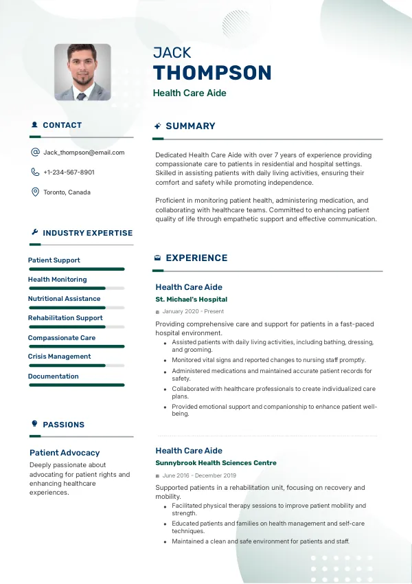 Get a professional Health Care Aide resume tailored to your skills and Canada’s hiring trends.