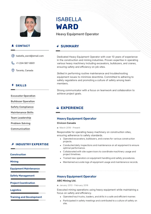 The demand for Heavy Equipment Operators in Canada is projected to remain strong in 2026, providing a stable career path for skilled workers. With ongoing infrastructure projects, the need for qualified operators will continue, offering opportunities for both local and international candidates. A TrueCV-optimized resume can help you navigate the job market effectively, ensuring you meet the expectations of employers.