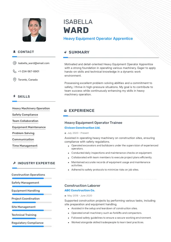 In 2026, the construction industry is projected to experience steady growth, leading to enhanced job security for Heavy Equipment Operator Apprentices. Employers are likely to seek candidates with the right skills, which may also open up visa opportunities for international applicants. A TrueCV can assist candidates in demonstrating their qualifications and adaptability in a global job market.