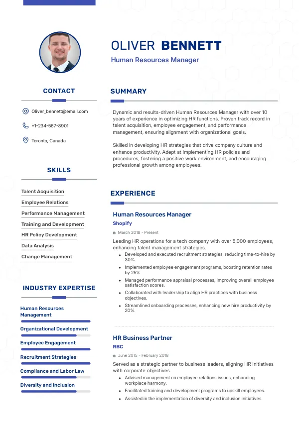 Get a professional Human Resources Manager resume tailored to your skills and Canada’s hiring trends.
