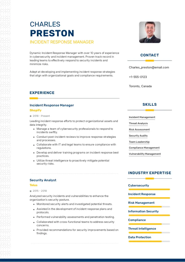 Resume Examples for Incident Response Managers