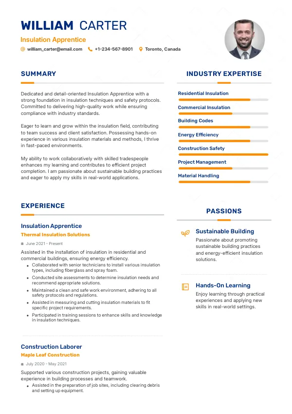 Resume Examples for Insulation Apprentices