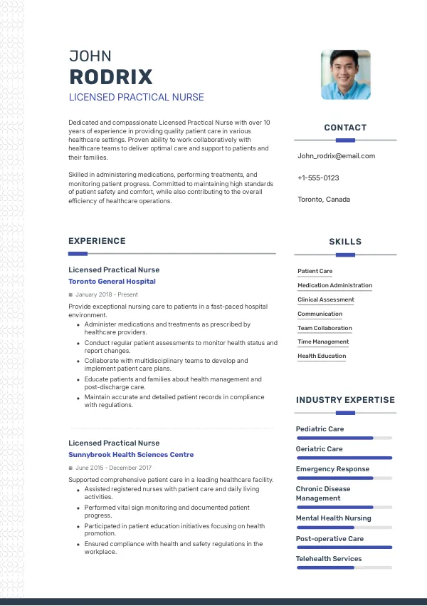 Get a professional Licensed Practical Nurse resume tailored to your skills and Canada’s hiring trends.