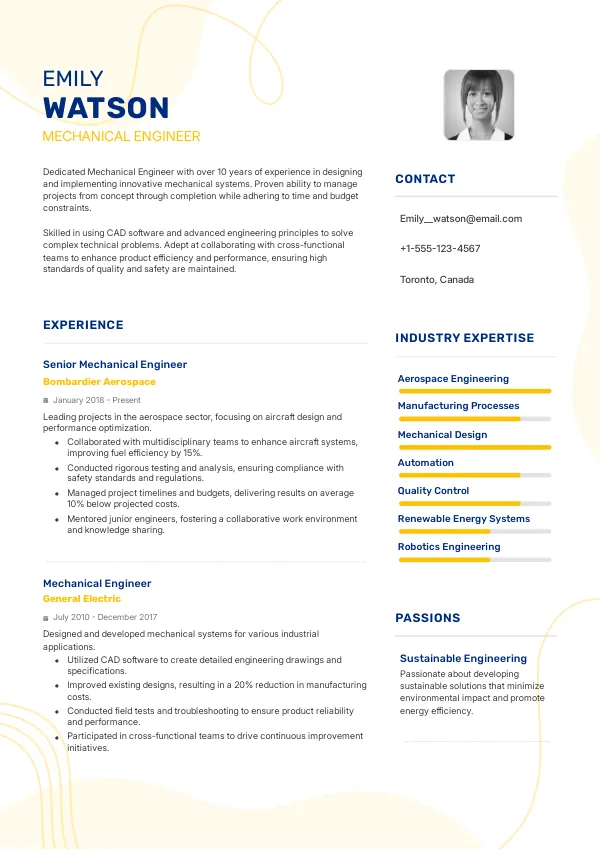 Get a professional Mechanical Engineer resume tailored to your skills and Canada’s hiring trends.
