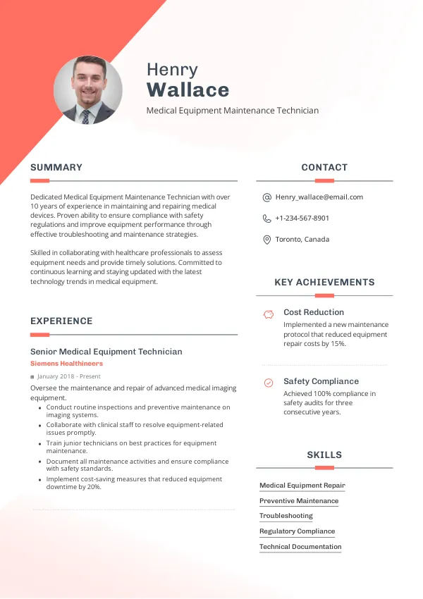 The healthcare sector in Canada is expected to maintain a steady demand for Medical Equipment Maintenance Technicians, providing a stable career path. As healthcare facilities expand and upgrade their technologies, the need for qualified technicians will remain strong. This stability can be particularly advantageous for international candidates seeking visa opportunities in Canada. A TrueCV-optimized resume can help these candidates effectively communicate their qualifications to potential employers.