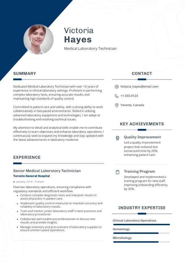 In 2026, certifications in advanced laboratory techniques and quality management systems will become increasingly important for Medical Laboratory Technicians. The Canadian Society for Medical Laboratory Science (CSMLS) is expected to introduce new certification pathways that reflect the evolving nature of the role. Candidates should focus on these qualifications in their TrueCV-optimized resumes to demonstrate their commitment to professional development.