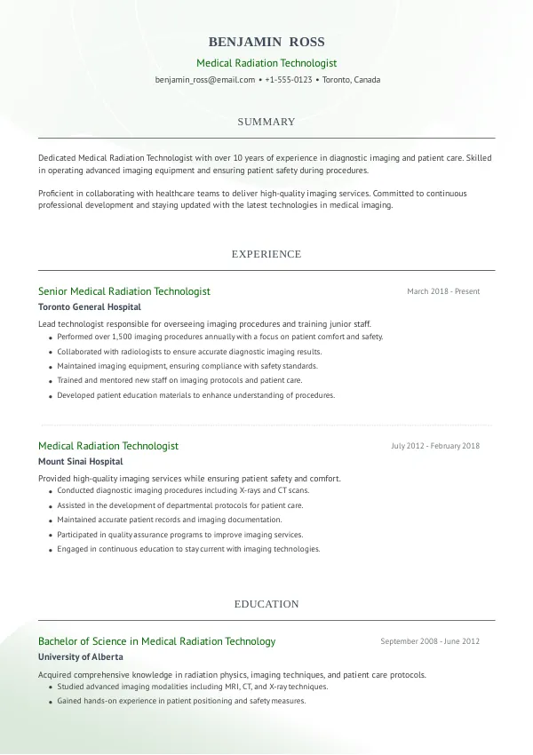 As the role of Medical Radiation Technologist evolves, ensure your resume reflects the latest skills and technologies with TrueCV to maximize your chances of success.