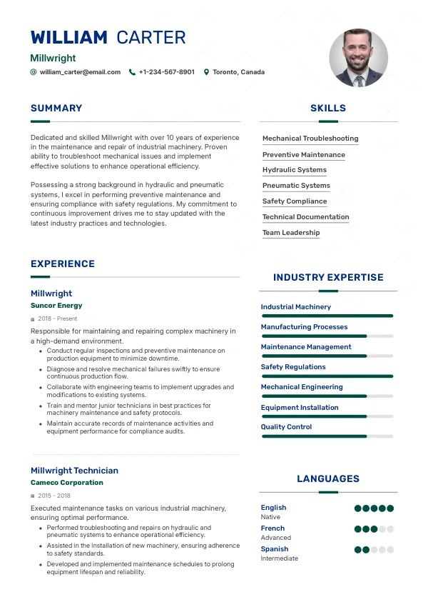 In 2026, the role of Millwrights in Canada is set to evolve significantly, driven by advancements in automation and smart manufacturing technologies. As industries increasingly adopt IoT and AI-driven machinery, Millwrights will need to adapt their skill sets to maintain and optimize these systems. A TrueCV-optimized resume will highlight your proficiency in these new technologies, aligning with the expectations of employers.