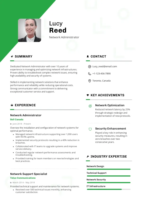 Get a professional Network Administrator resume tailored to your skills and Canada’s hiring trends.