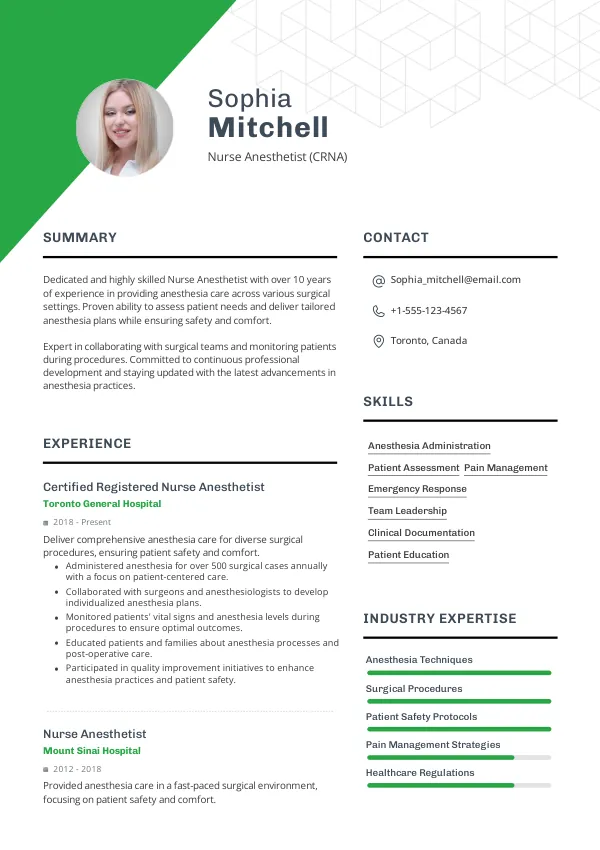 Major healthcare organizations such as Toronto General Hospital, St. Michael's Hospital, and Hamilton Health Sciences are ramping up their hiring of Nurse Anesthetists in 2026. These employers are seeking CRNAs who can effectively integrate new technologies and enhance patient care. A TrueCV-optimized resume will help you align your skills with the specific needs of these top employers.