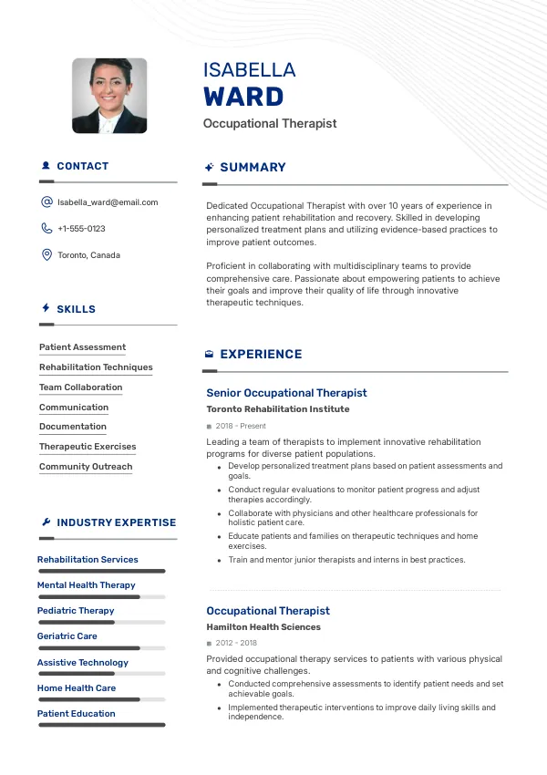 In 2026, the demand for Occupational Therapists is expected to remain strong, providing a stable career outlook. This stability is further supported by the Canadian government's initiatives to improve healthcare access, which may also open up visa opportunities for international candidates. A TrueCV can help you navigate these opportunities by emphasizing your adaptability and readiness for the Canadian healthcare system.