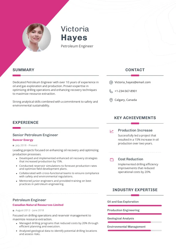 Leading companies such as Suncor Energy, Canadian Natural Resources Limited, and Husky Energy are expected to ramp up hiring for Petroleum Engineers in 2026. These employers are focusing on innovation and sustainability, seeking candidates who can contribute to their strategic goals. A TrueCV-optimized resume will help candidates stand out in this competitive landscape.
