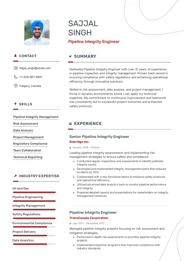 Resume Examples for Pipeline Integrity Engineers